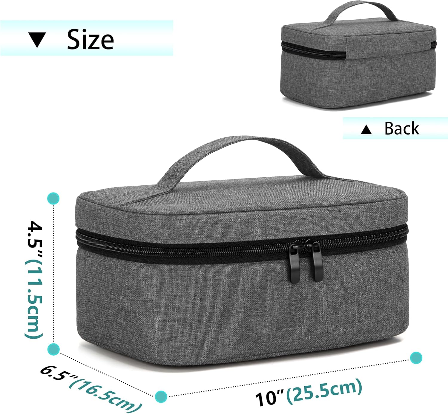 - DIMENSIONS: 10″(L) x 6.5″(W) x 4.5″(H).