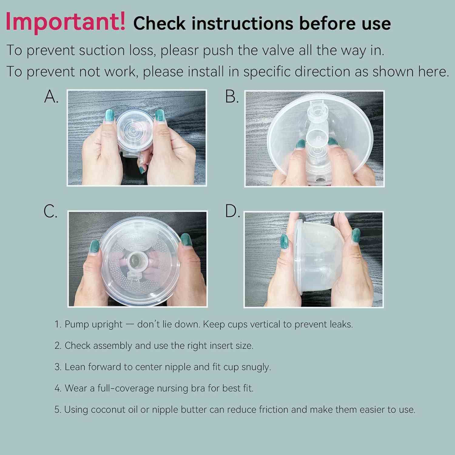 • JIMOWANG 24mm Wearable Breast Pump Milk Collector Cup Set with Flange Inserts and Duckbill Valve